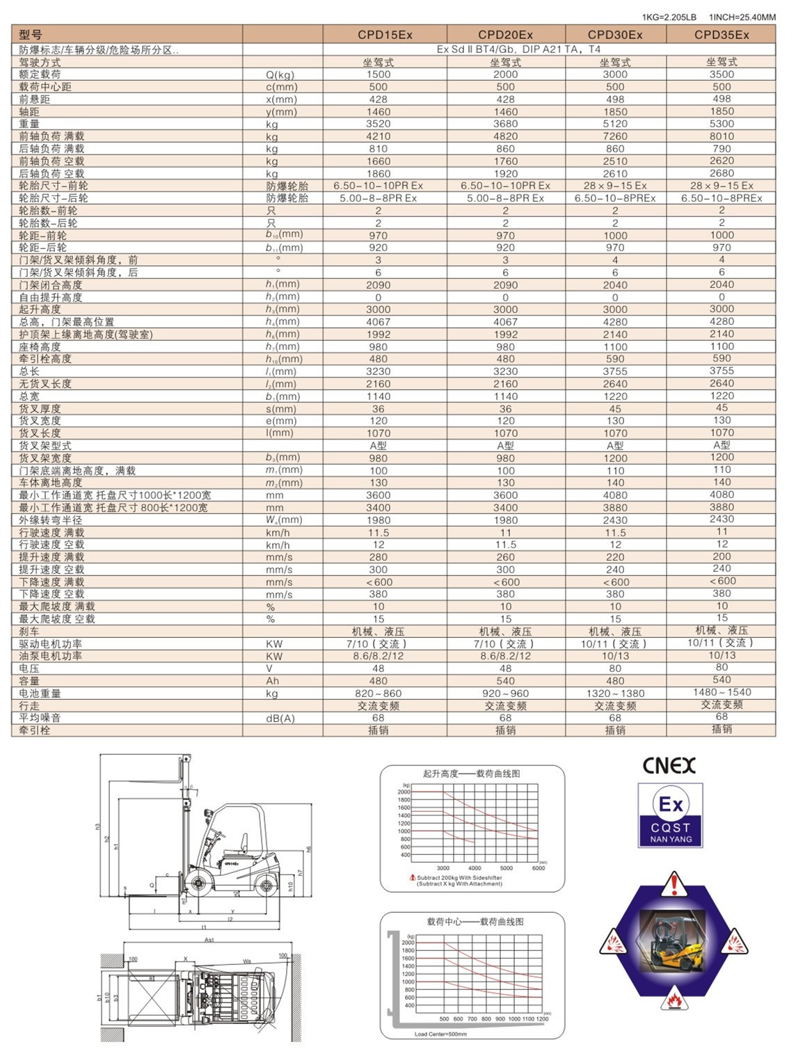 我公司生產(chǎn)的交流變頻防爆電動叉車,嚴格按照國家相關防爆標準設計和制造。屬于工程用的II類防爆電器設備,防爆等級Ex d mb s IIB T4 Gb / DIP A21 TA.T4適用于爆炸性氣體環(huán)境的1區(qū)和2區(qū)危險場所,粉塵環(huán)境的22、21區(qū)危險場所,使用該車高度安全,功能齊全。